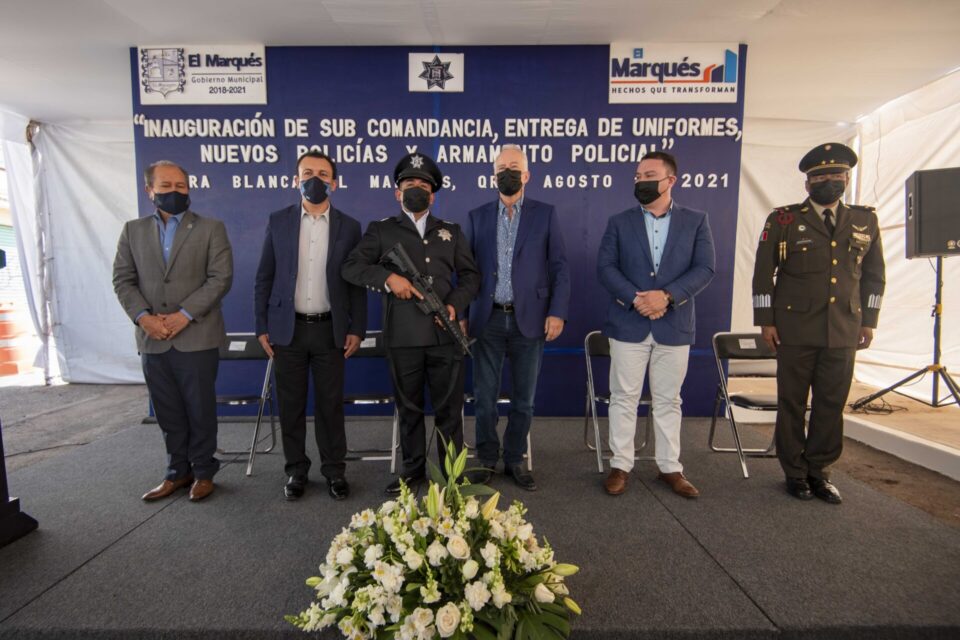 El presidente municipal de El Marqués, Enrique Vega Carriles, encabezó la inauguración de la Subcomandancia de la Secretaría de Seguridad Pública y Tránsito Municipal (SSPyTM) en la comunidad de Tierra Blanca, así como la entrega de equipamiento táctico y uniformes y la presentación de 19 nuevos elementos de la Secretaría de Seguridad Pública y Tránsito Municipal de El Marqués.